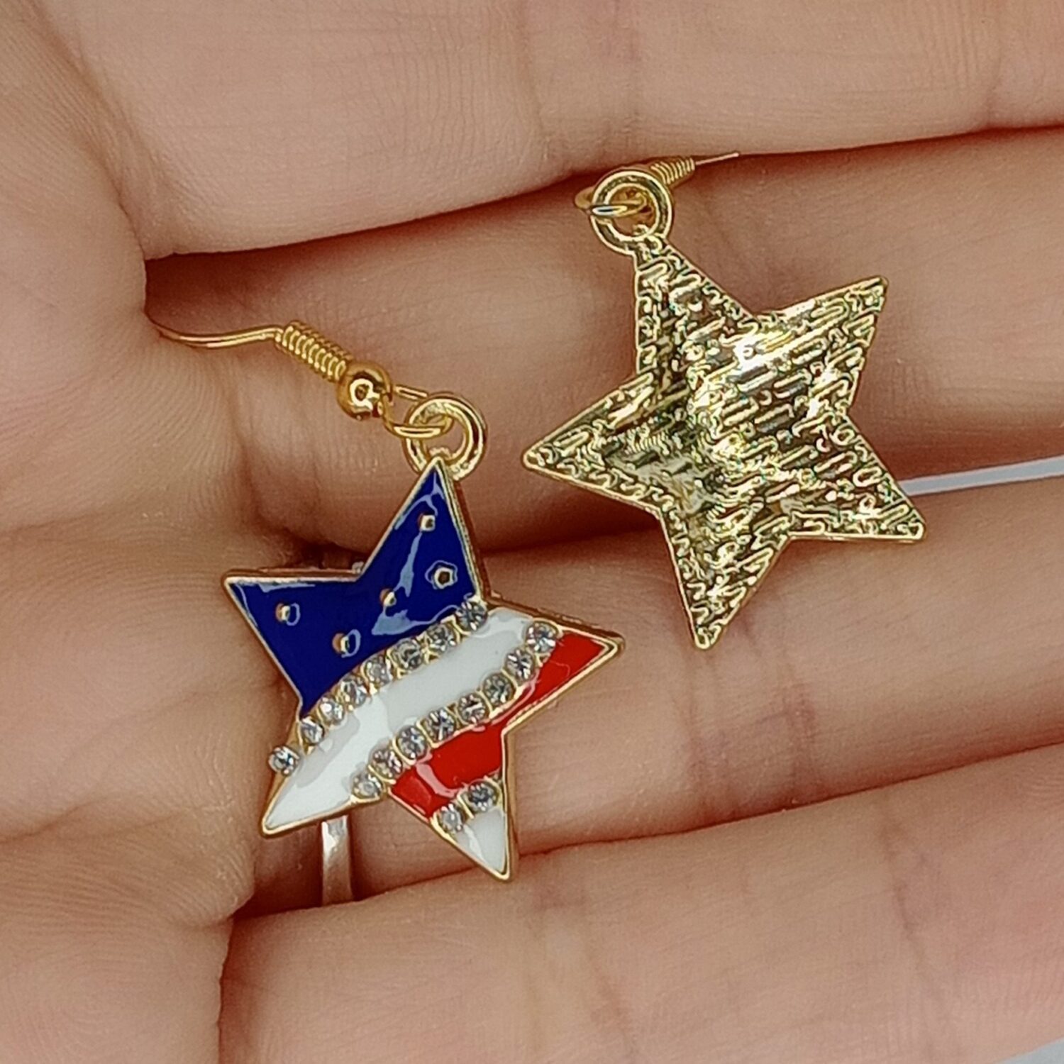 For those who prefer a bolder statement, our Star-shaped American Flag Earrings are the perfect choice. The classic star shape is intricately detailed with the stars and stripes pattern, creating a dazzling representation of the American flag. These earrings exude a sense of strength and pride, making them an ideal accessory for those who want to make a bold and patriotic fashion statement. Whether you’re attending a patriotic event or simply want to express your love for your country, these earrings will undoubtedly turn heads.