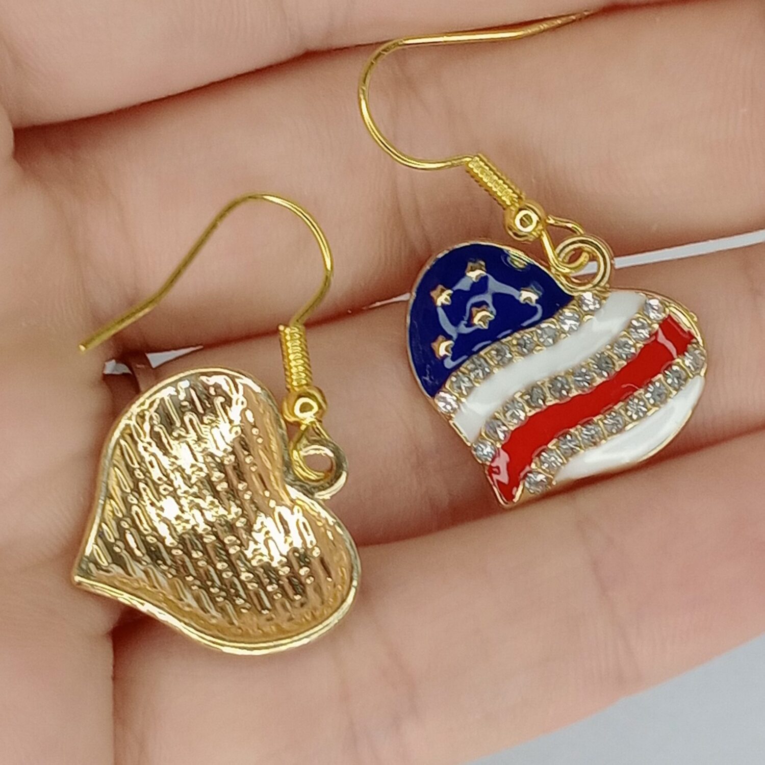 Celebrate your patriotism in style with our American Flag Earrings – the perfect blend of fashion and national pride. Whether you choose a heart-shaped or star-shaped design, these earrings symbolize your love for the United States of America. Order yours today and let your style shine with a touch of American spirit!