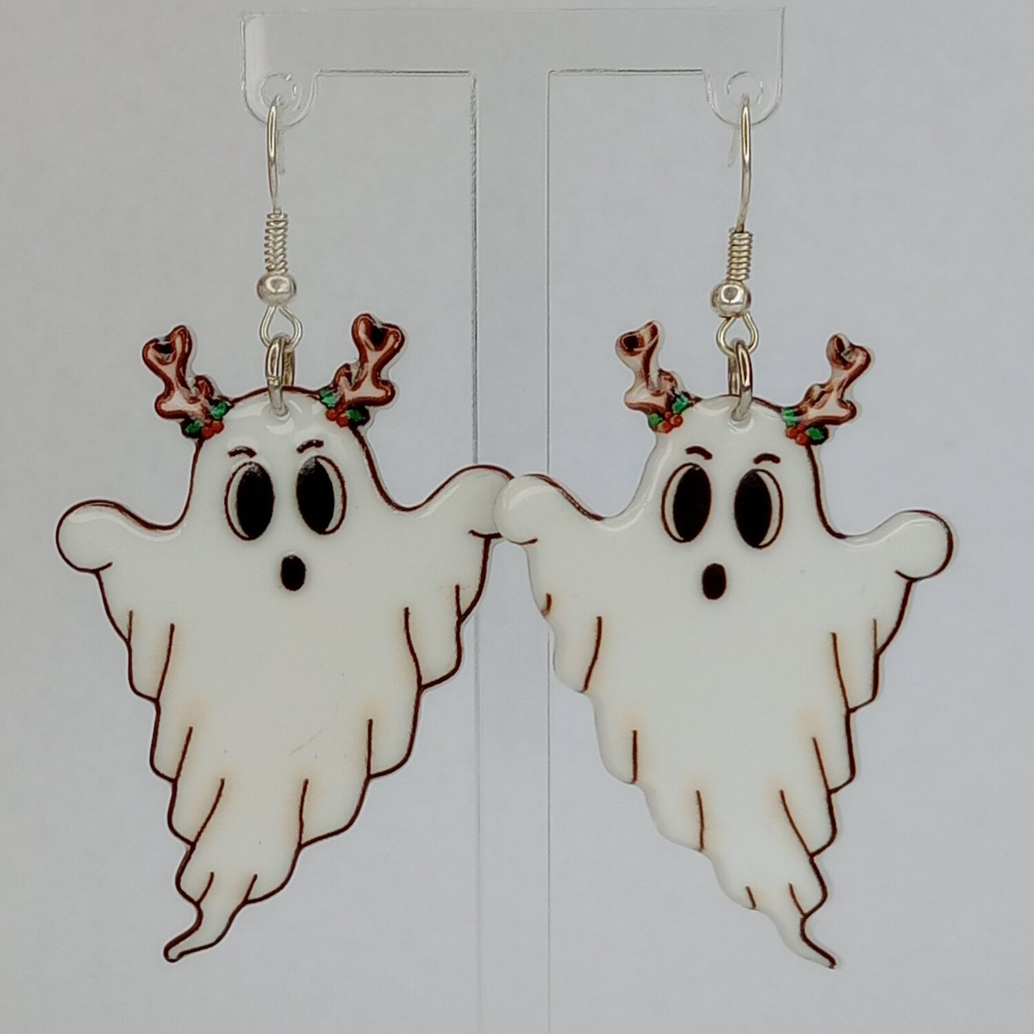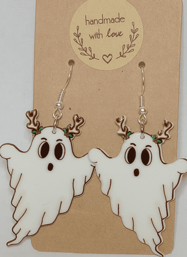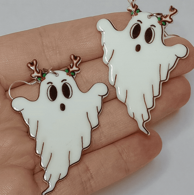 Festive, playful, and just the right amount of spooky, these Christmas Ghost Earrings are a fun choice for anyone looking for cute holiday earrings with a quirky seasonal twist. Each earring features a white ghost design with tiny reindeer antlers and festive little details that give the pair a cheerful Christmas feel. These dangling ghost earrings feel light and easy to wear, whether you’re styling them with cozy winter outfits, holiday party looks, or just adding a little extra character to your December accessories. They’re especially fun for anyone who loves ghost earrings, whimsical Christmas jewelry, or festive pieces that lean a little cheeky. A spirited little pair that is clearly ready for reindeer games.