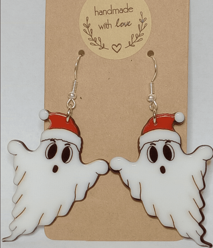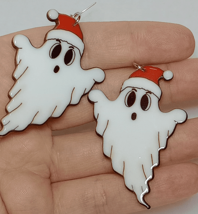 Playful, spooky, and full of festive charm, these Christmas Ghost Earrings are a fun choice for anyone looking for cute holiday earrings with a ghostly twist. Each earring features a white ghost design with dark eyes, soft flowing edges, and a bright red Santa hat that gives the pair a cheerful Christmas feel. These dangling ghost earrings feel light and easy to wear, whether you’re styling them with casual winter outfits, holiday party looks, or adding a little spooky season energy to December. They’re especially fun for anyone who loves Halloween inspired Christmas earrings, festive ghost jewelry, or accessories that feel quirky and a bit cheeky. A spirited little pair that is here for the holiday haunt.