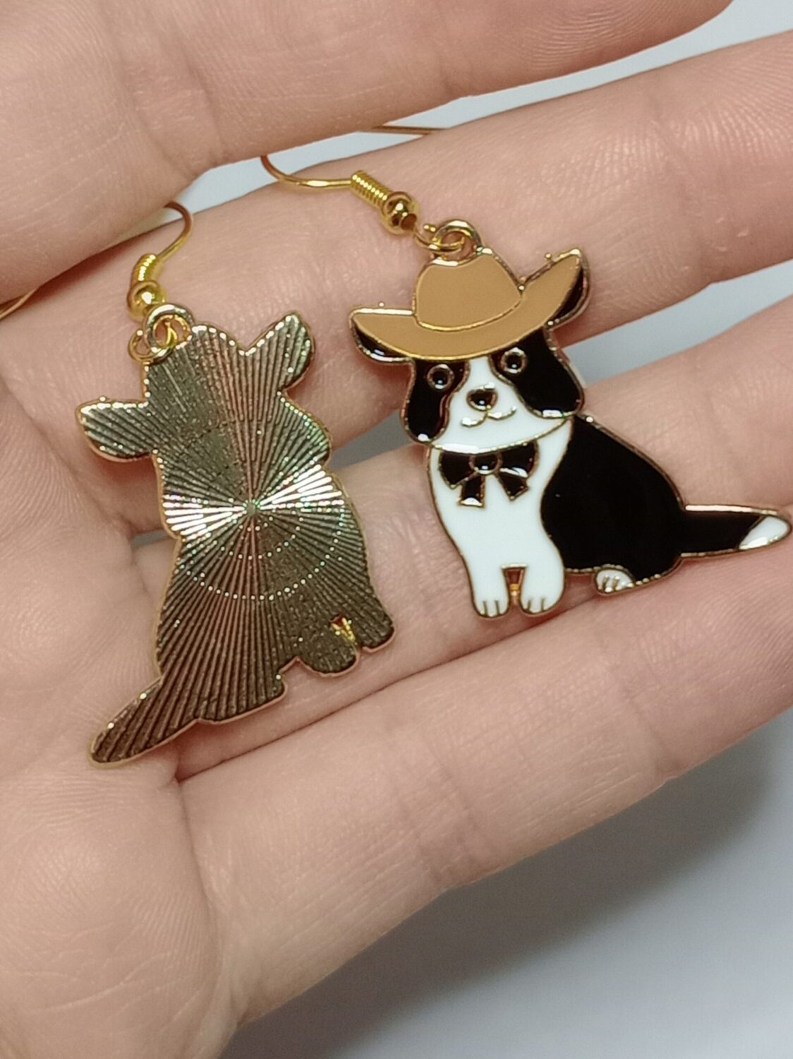Introducing the whimsical charm of our handmade cowboy hat dog earrings! These delightful accessories feature an adorable canine companion donning a tiny cowboy hat, adding a touch of Western flair to your style. Crafted with attention to detail, each earring captures the essence of man’s best friend embracing their inner cowboy. The miniature cowboy hat sits atop the dog’s head, creating a playful and unique accessory that is sure to turn heads. Perfect for dog lovers and those with a penchant for quirky fashion, these earrings are a delightful way to showcase your love for pets and embrace a bit of cowboy spirit in a fun, wearable form. Whether you’re heading to a casual outing or a themed event, let these charming earrings express your love for dogs and add a touch of cowboy whimsy to your ensemble.