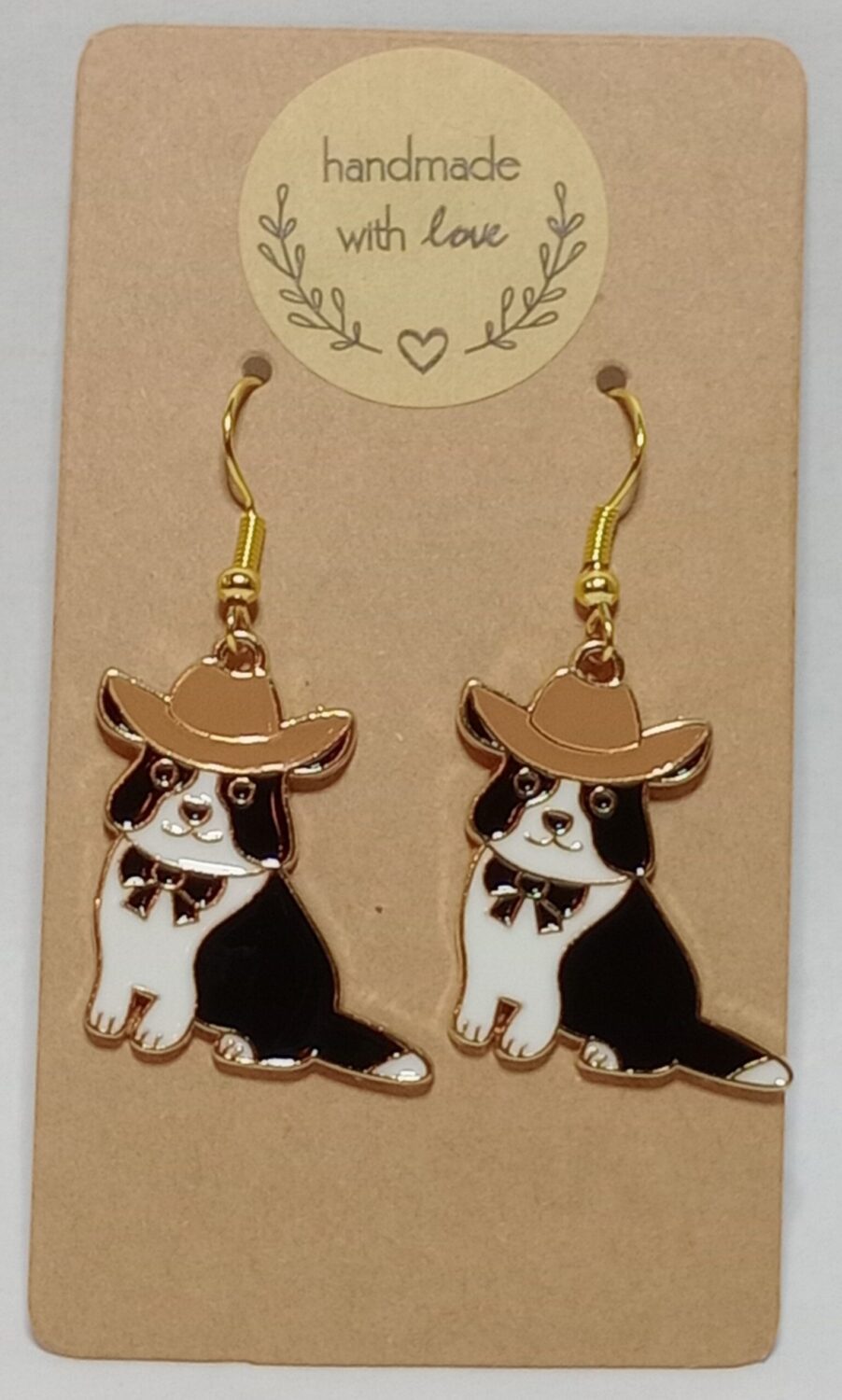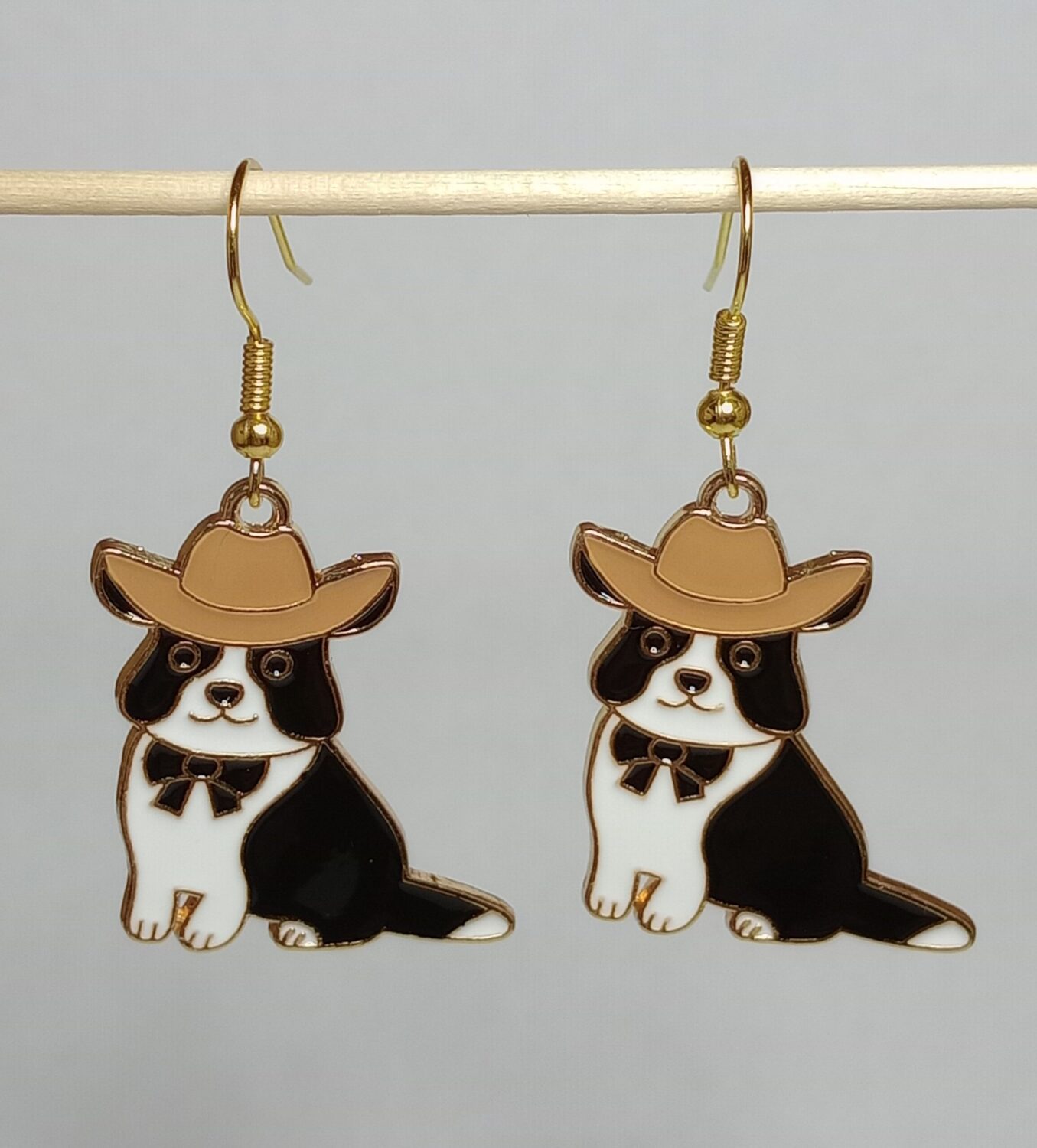 Embrace a playful touch of Western charm with these handmade cowboy hat dog earrings, featuring adorable canine companions ready to add a whimsical flair to your style.