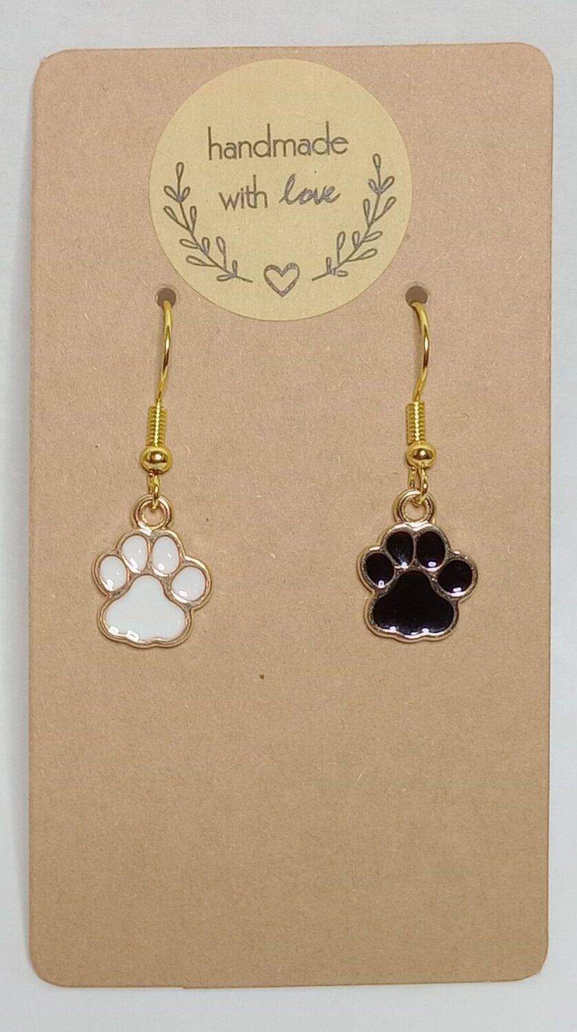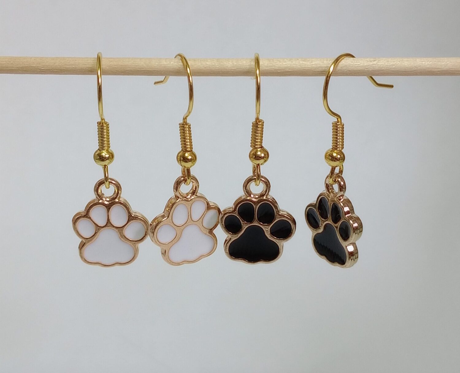 Introducing our Paw Print Earrings, featuring a charming design of black paw prints for a touch of subtle elegance, with additional options showcasing white paw prints or a delightful combination of both colors, allowing you to express your love for pets in style.