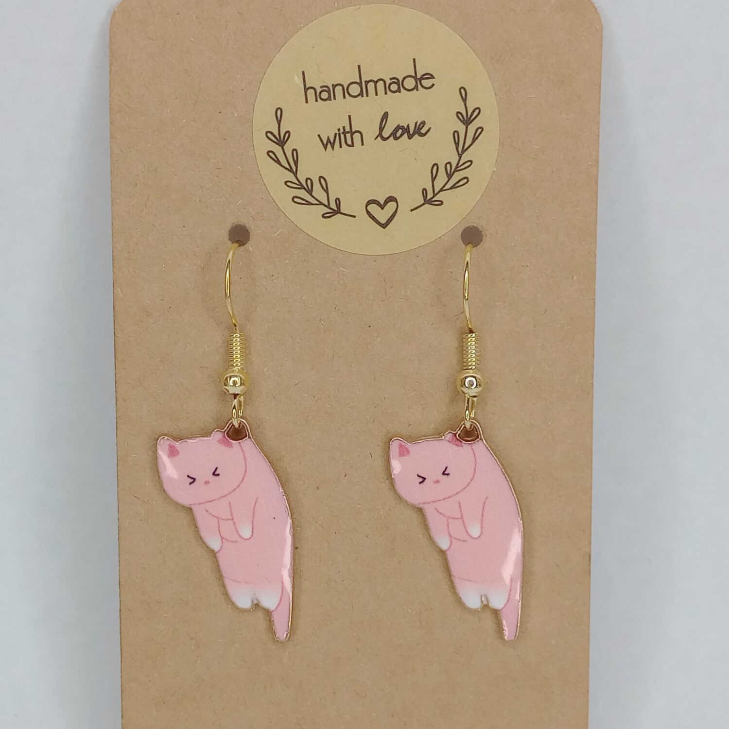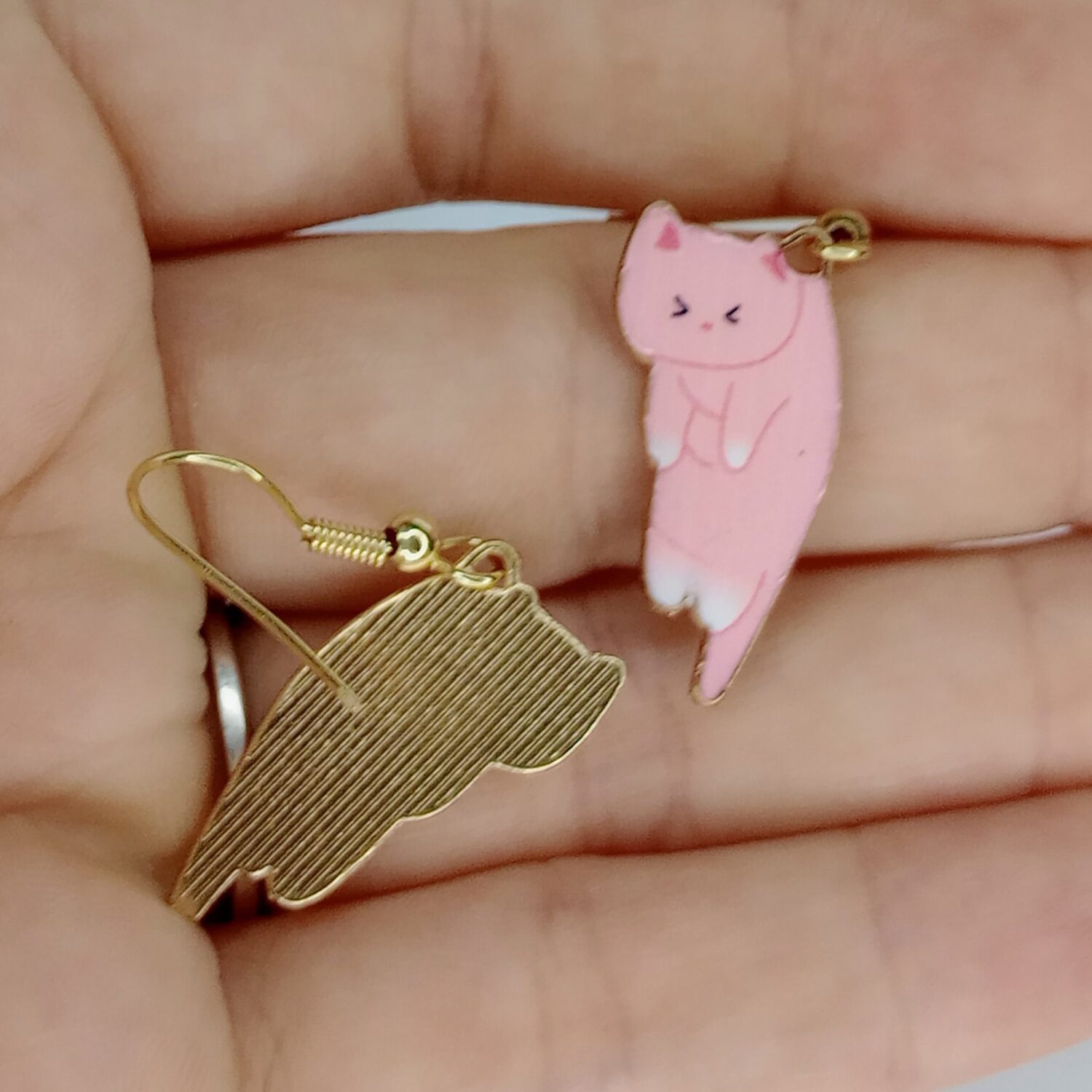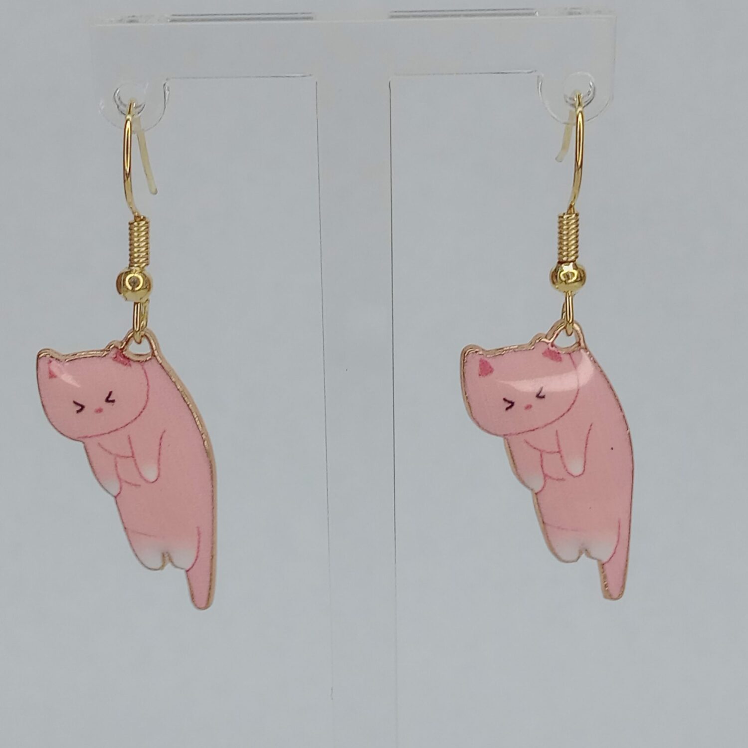 Sweet, playful, and full of feline charm, these Pink Kitty Earrings are a fun choice for anyone who loves cute cat earrings with a soft pop of color. Each earring features a pink cat design with delicate details, a simple expression, and a stretched out pose that gives the pair extra personality. These dangling cat earrings feel light and easy to wear, whether you’re styling them with casual outfits or adding a playful cat lover accent to your day. They’re especially lovely for anyone drawn to pink cat earrings that feel cheerful, whimsical, and easy to style. A darling little pair that keeps things sweet without being too fussy.