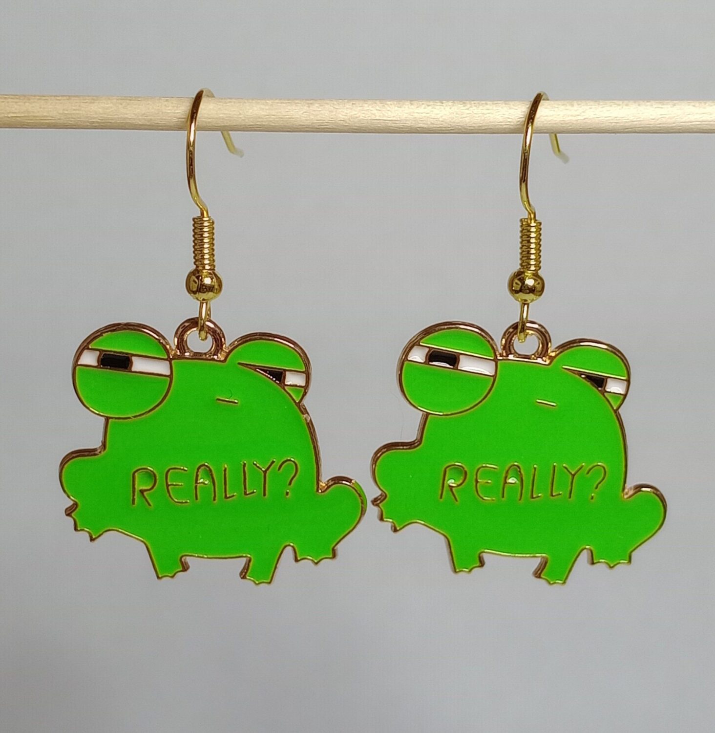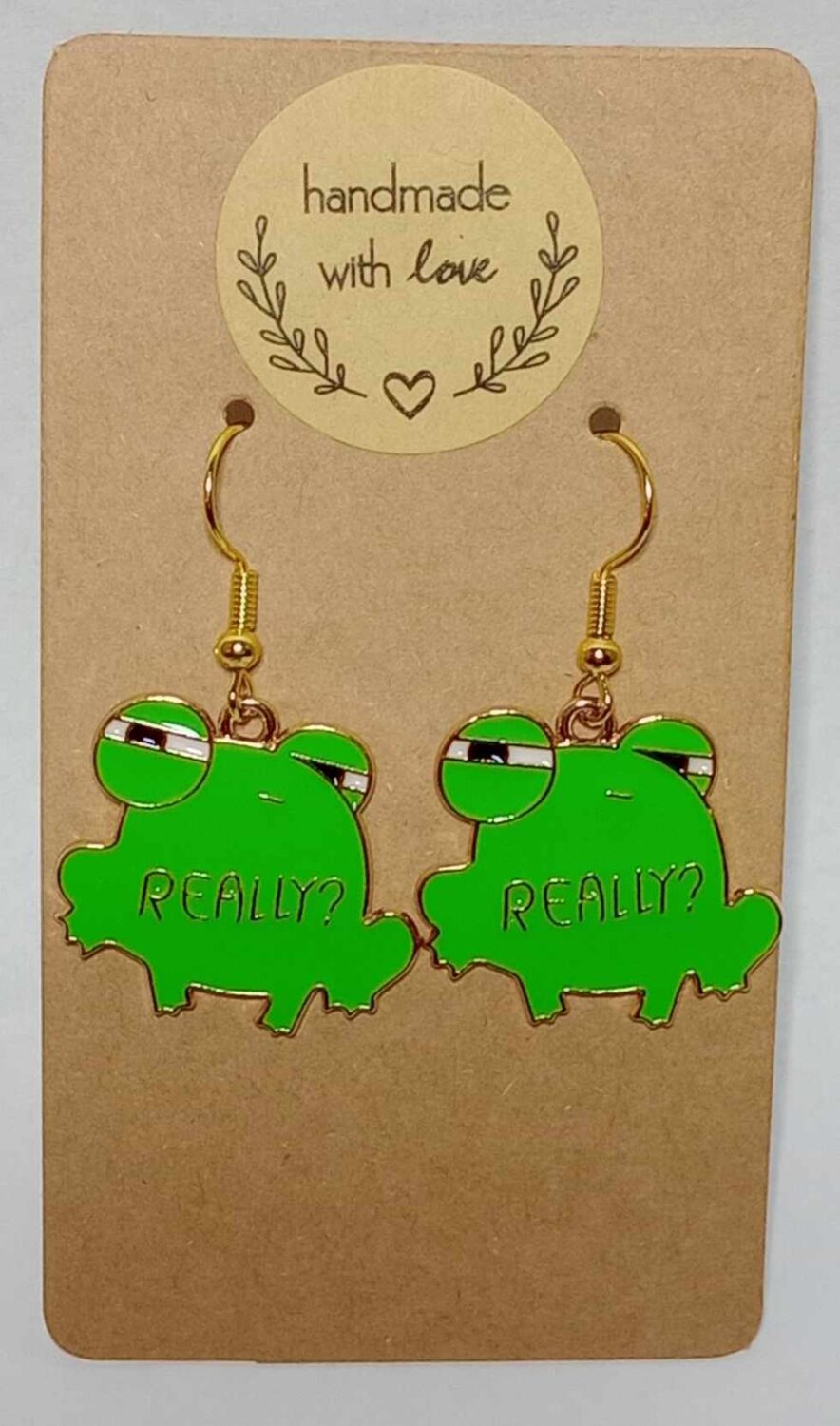 Introducing our adorable and delightfully irreverent Froggy Expressions Earrings! These quirky accessories are designed to add a touch of whimsy and sass to your style. Crafted with meticulous detail, these earrings feature two mischievous frog characters expressing their candid thoughts.