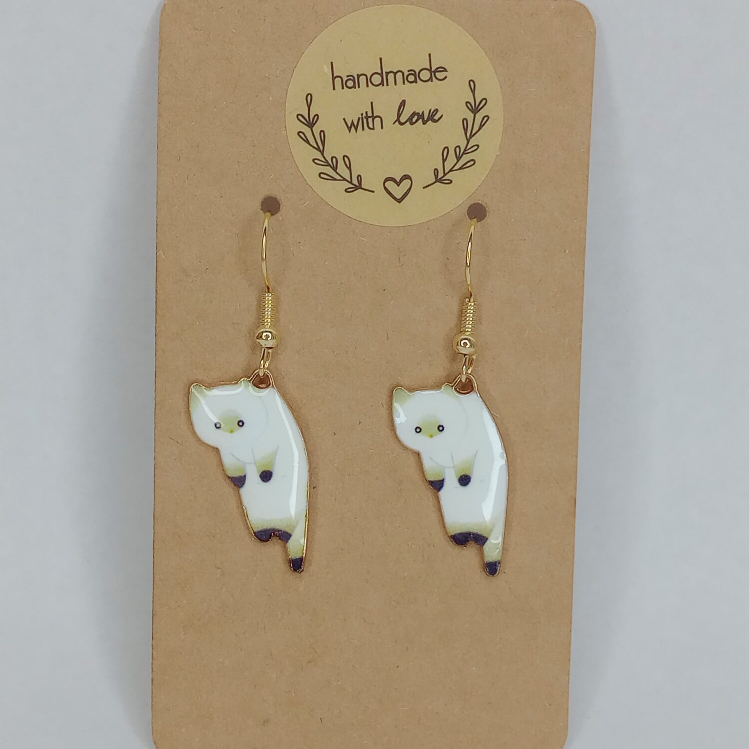 Sweet, playful, and full of feline charm, these Siamese Kitty Earrings are a lovely pick for anyone searching for cute cat earrings with a soft, distinctive look. Each earring features a cream colored cat design with darker pointed details, tiny facial features, and a stretched out pose that gives the pair extra personality. These dangling cat earrings feel light and easy to wear, whether you’re styling them with casual outfits or adding a fun cat lover accent to your day. They’re especially lovely for anyone drawn to Siamese cat earrings that feel playful, polished, and a little bit different from the usual. A charming little pair that keeps things cute with just the right amount of cat attitude.